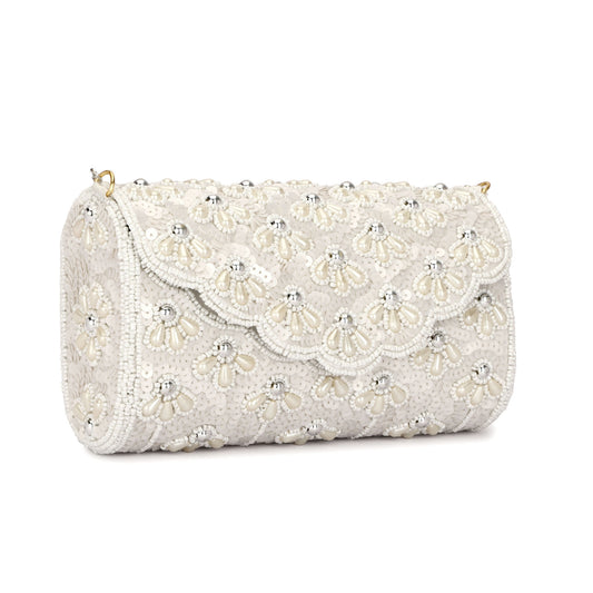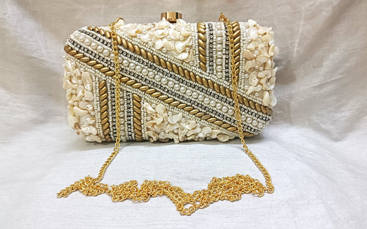Stylish Handmade Pearl Beaded women partywear cream clutch purse