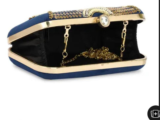 Women and Girls Premium Look Hand Clutch Box | Party Clutch | Bridal Clutch | Sling Bag Box Ladies Clutch with Chrome Frame Stylish Heavy Push Lock & Sling Chain Clutches