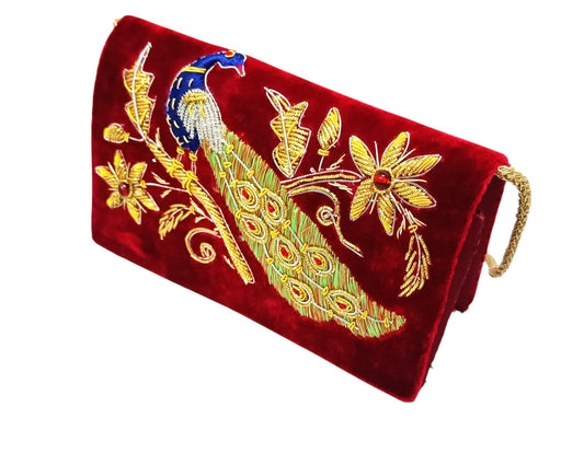 Peacock design handmade women velvet sling bag