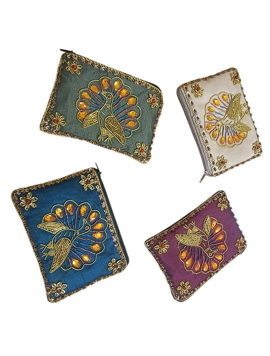 set of 4 pcs women & Girls coin pouch bags peacock design