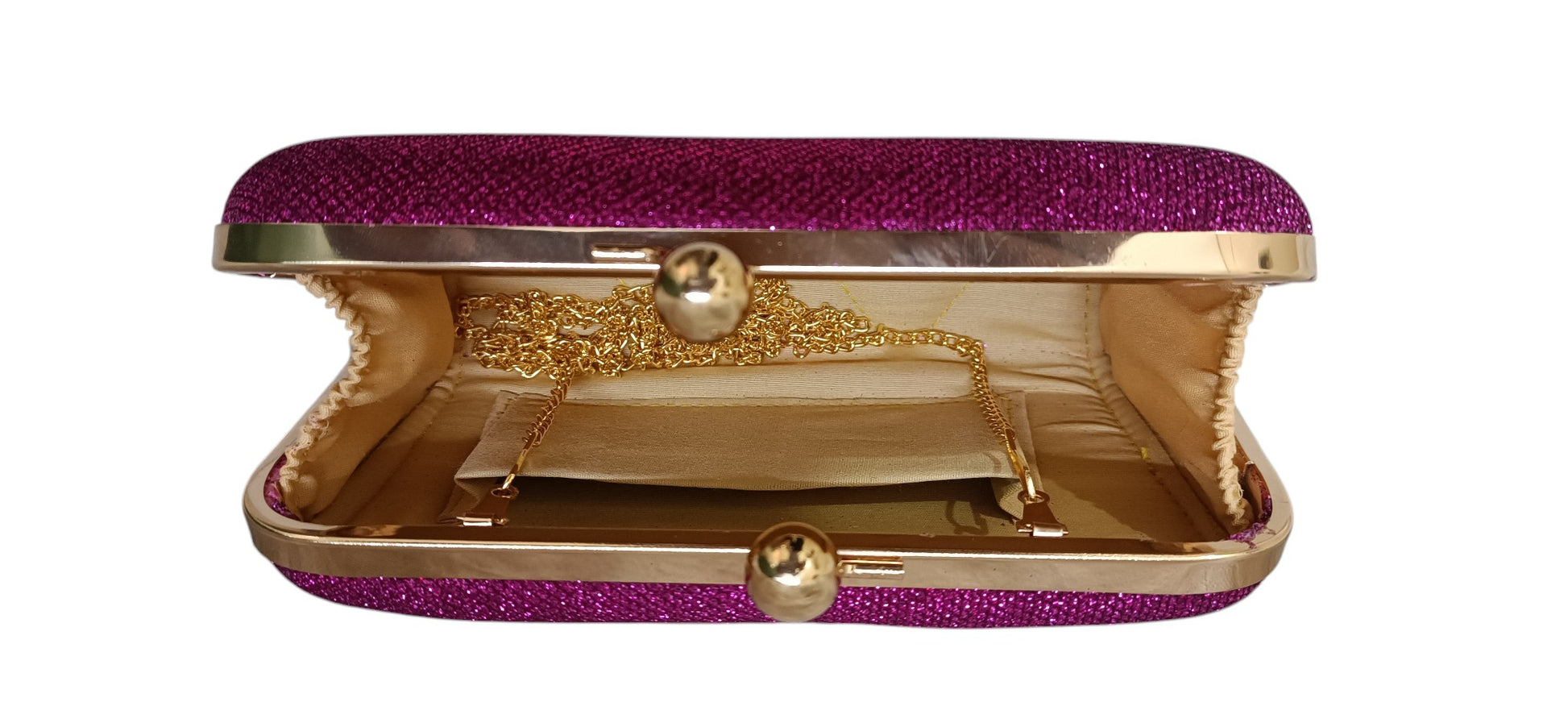 sparkling fabric women clutch box size 8x4.5 inch fusia color