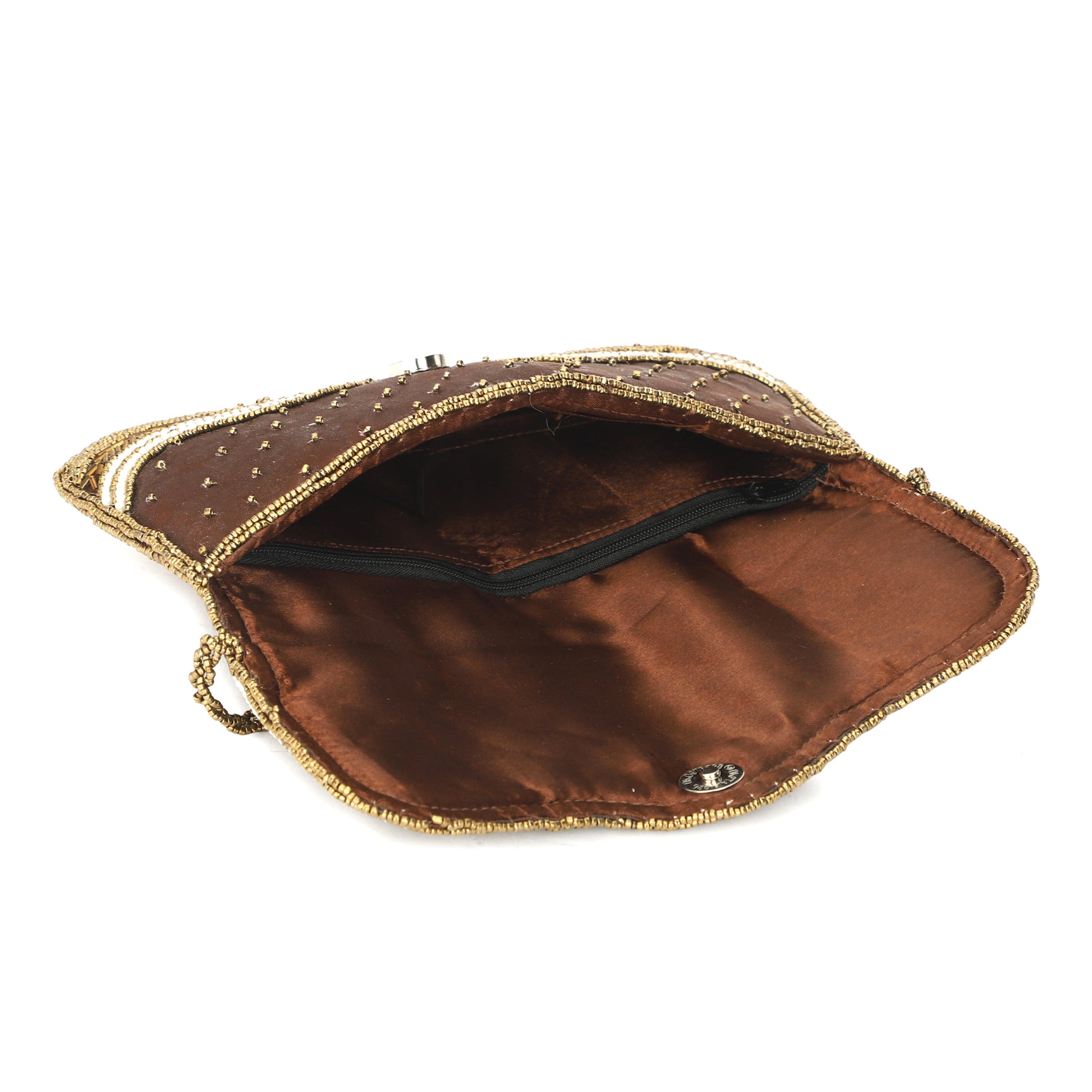 Make a timeless statement with our Glass bead Design BROWN Clutch Purse, perfect for weddings, parties, and special events. This elegant clutch is adorned with intricate pearl detailing, adding a touch of luxury to any outfit. Compact yet functional, it provides enough space for your evening essentials like your phone, cards, and lipstick.