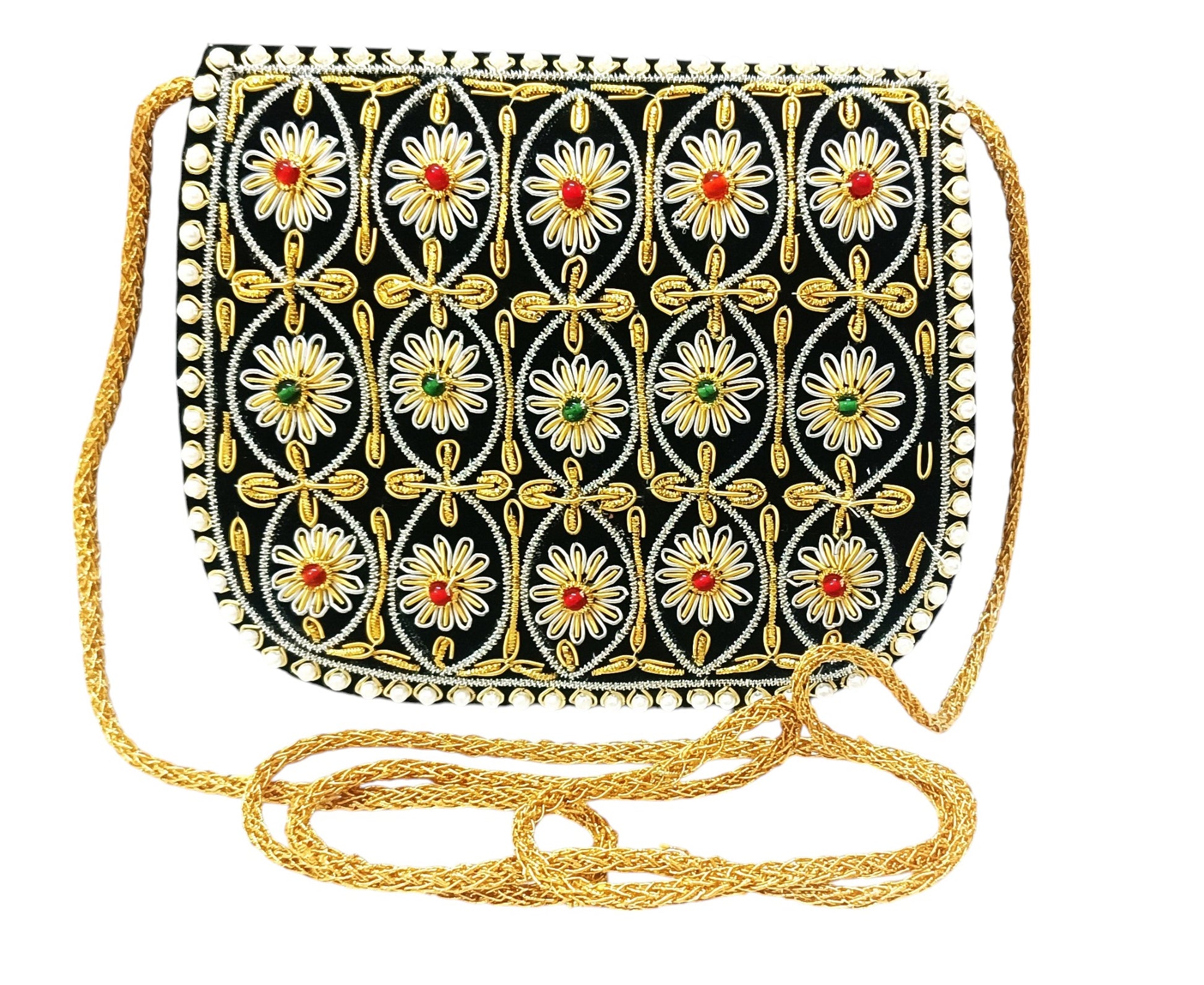 Elevate your evening look with our Zardosi Work Elegant Women’s sling Purse. Handcrafted with intricate Zardosi embroidery, this box purse exudes traditional elegance combined with modern style. Perfect for weddings, parties, and festive occasions, it’s a chic accessory designed to carry your essentials in a sophisticated manner.