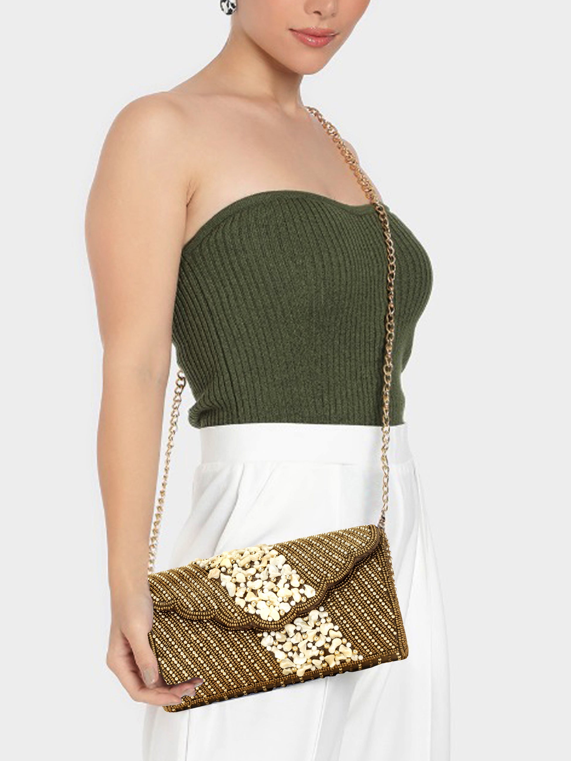 clutch bag with quilted. Its belt is full length bold Gold Chain. This is one of the most stylish and popular design of clutch bags, suitable for both young girls and women. Stylish sling perfect for parties and clubbing, or for casual daily use. Fashionable Choice for All Occasions This clutch handbag can be used in many ways either hold it or carry it, and with its classy retro design, it match chunky ankle boots or high heels shoes well, which will be able to complete your perfect look for any happy event, including weddings, cocktail parties and brunches.
