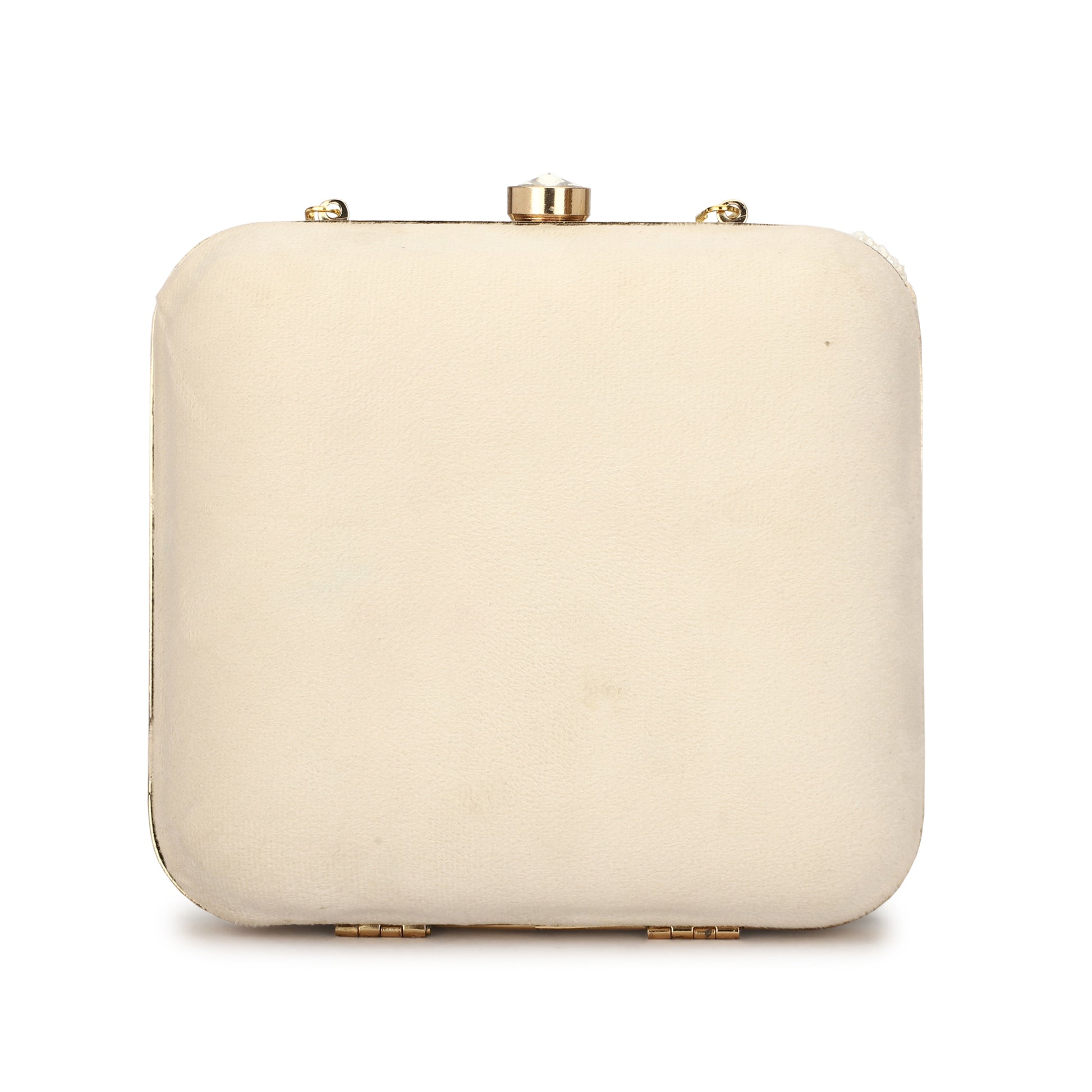Women's White Pearls Hand Embroidered Party Box Clutch Purse Bag