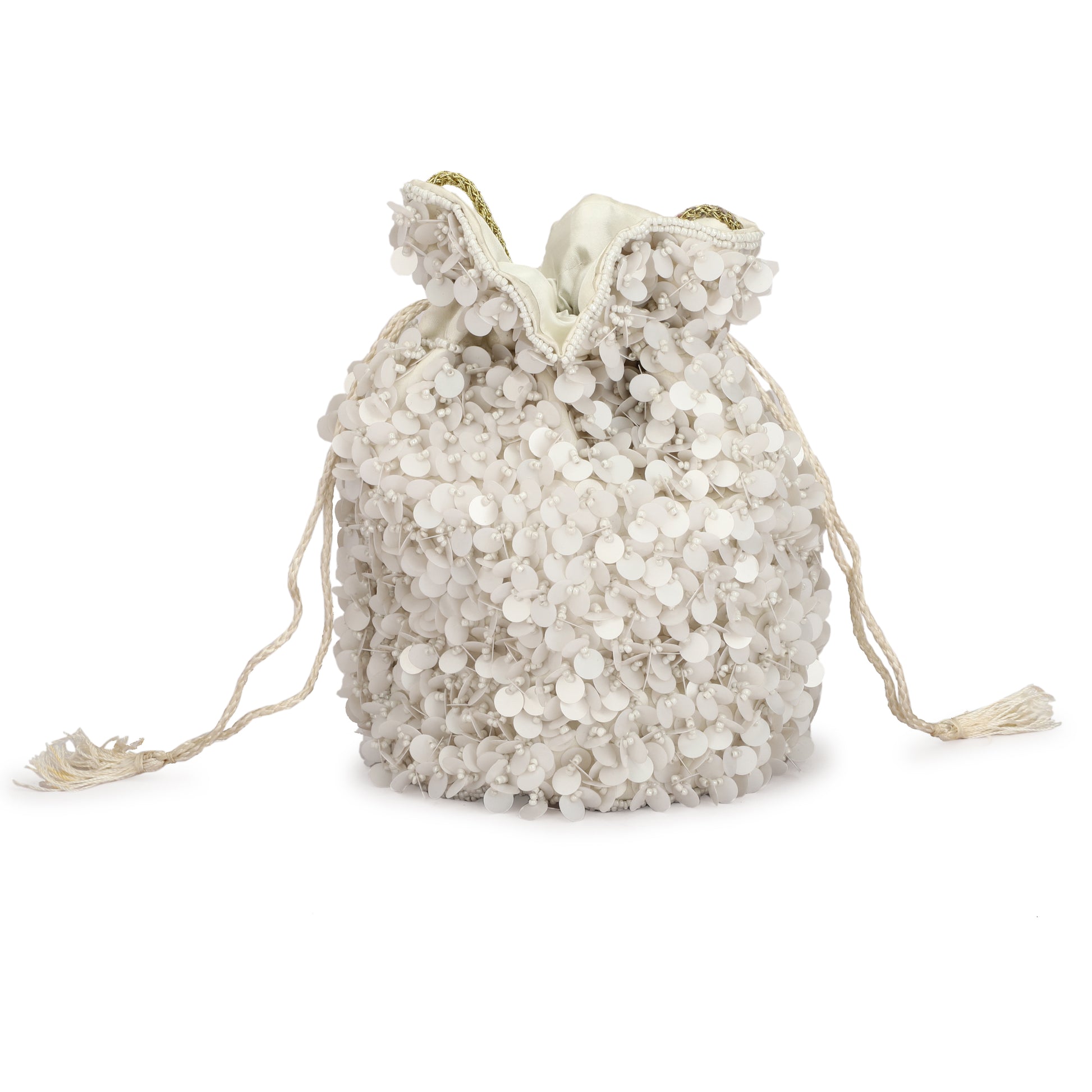 Introducing our Beaded Women white Potli Bag, a stunning accessory that combines elegance and versatility. This beautifully crafted potli bag features intricate beadwork in a chic black hue, making it a perfect complement to any outfit, whether it’s for a festive celebration, a wedding, or a night out on the town. Designed with a drawstring closure, this bag offers both style and practicality, providing ample space for your essentials while maintaining a lightweight feel.