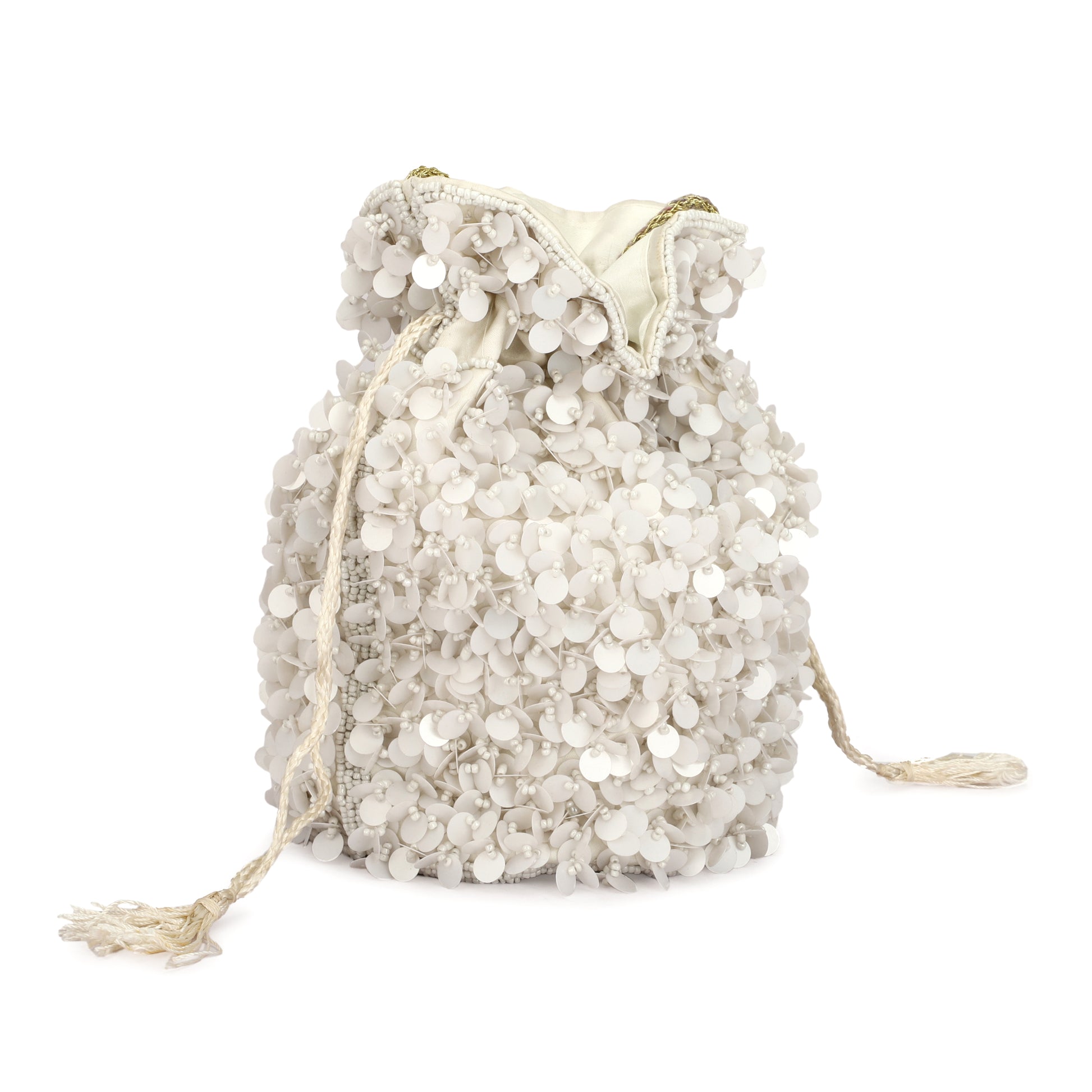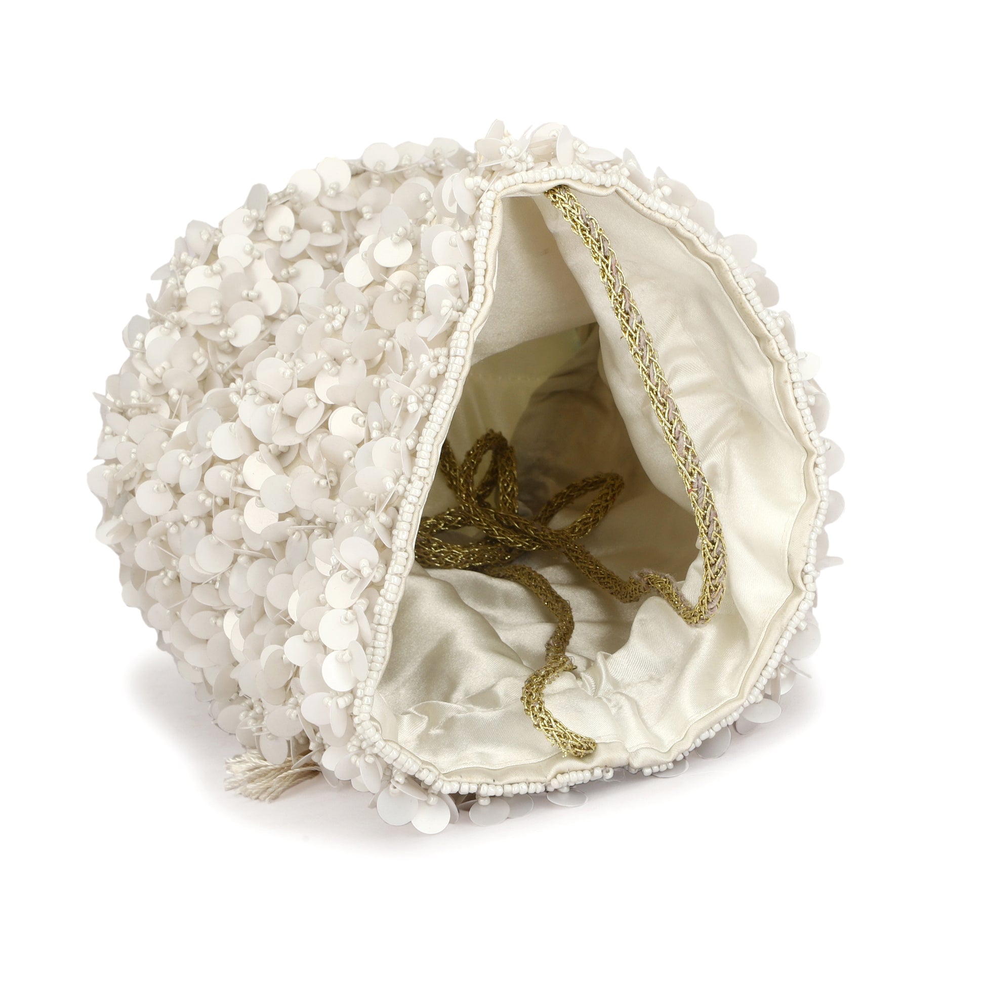 Zari Handmade Wedding Potli Bag | Embroidery Handbag With Beaded Chain For Women